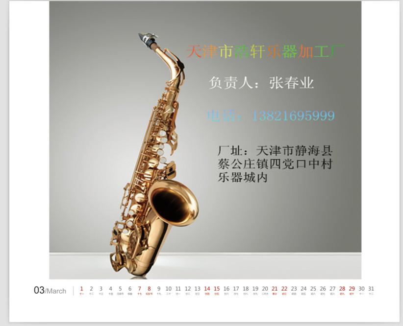 山东乐器展会台历赠送